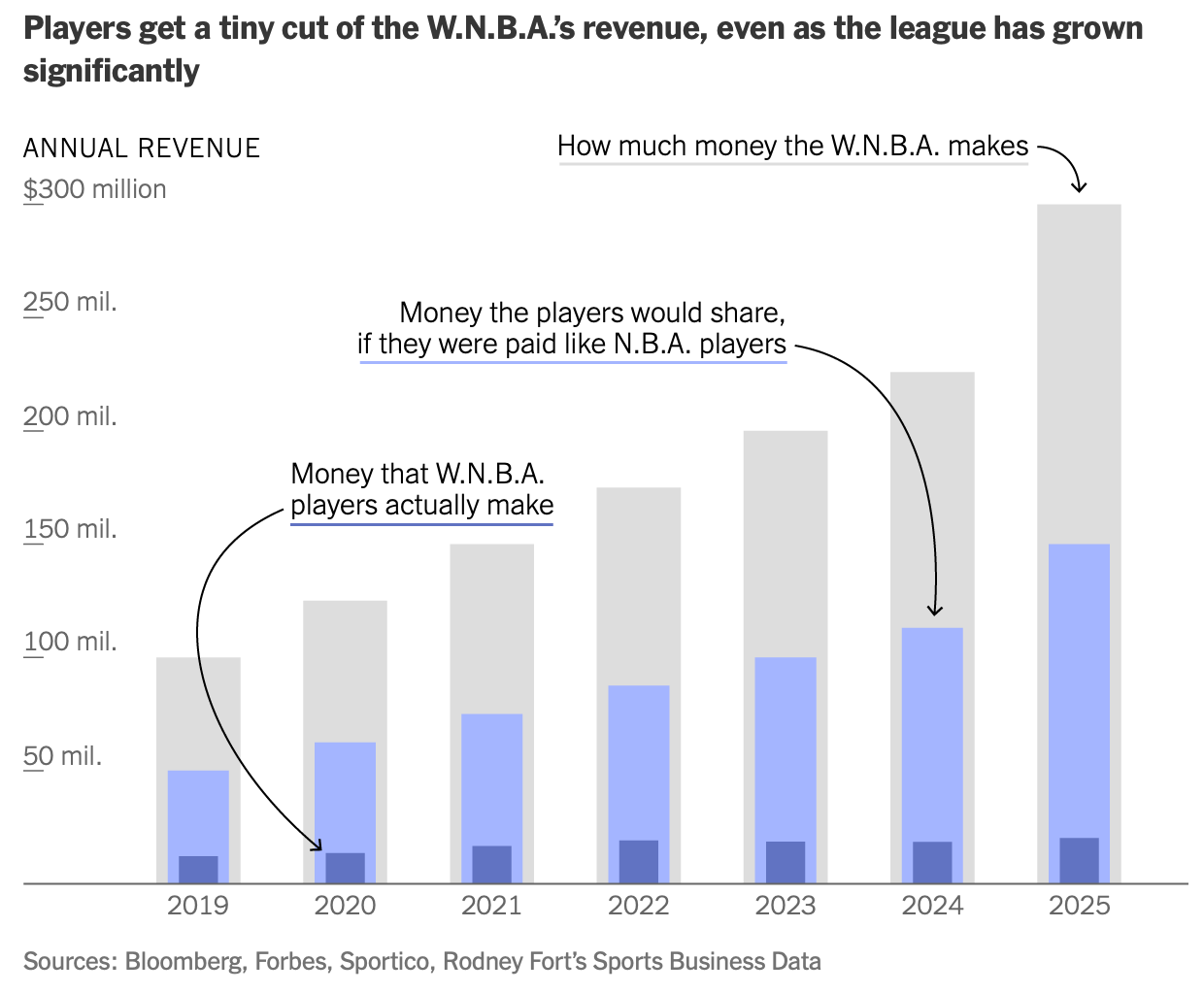In a brilliant piece for the New York Times, economics professor David Berri quantified the pay disparities in women’s pro basketball.